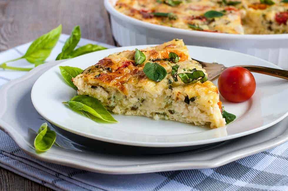 This low-carb Cheesy Crustless Zucchini Quiche is a tasty Keto option for brunch, lunch or a side. Easy to make with eggs, cheese, almond and coconut flour.